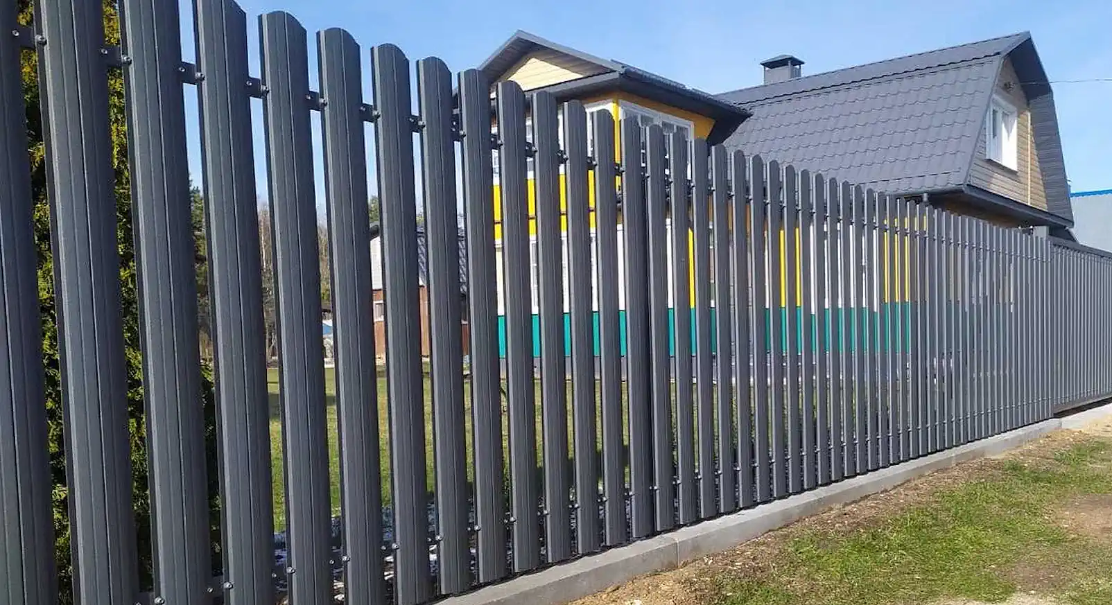 Самый распространённый тип заборов, который используется сейчас, это металлический евроштакетник. Его основные преимущества оптимальное соотношение цена и качество, долговечность, хорошая проветриваемость участка, эстетичность и монтируется просто и легко.